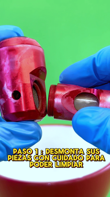 - Asegúrate de que tu pipa esté preparada para recibir el proceso de limpieza. Elimina cualquier residuo de ceniza del interior antes de proceder con el lavado. Desarma tu pipa con cuidado para evitar posibles daños en alguno de sus accesorios
