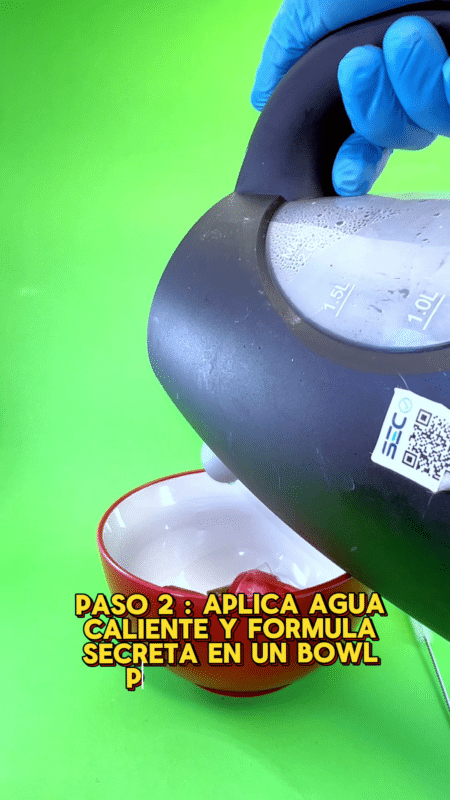 - Aplica 30 ml de la “Fórmula Secreta 420” al interior de un bowl + Agua caliente y luego incorpora las piezas de tu pipa .