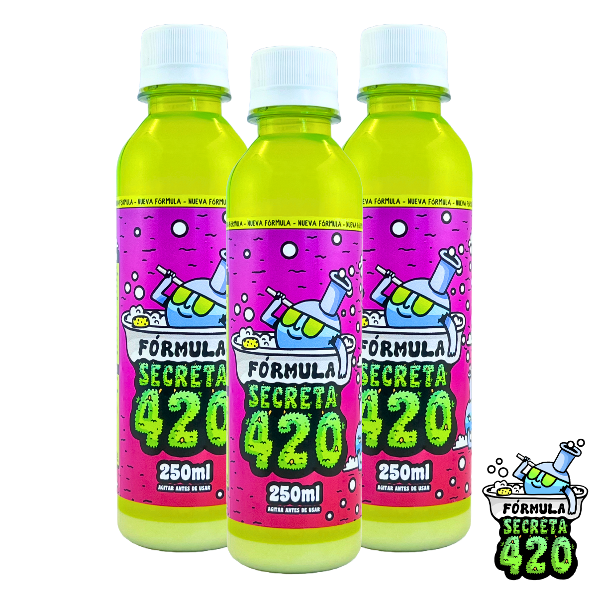 - Agita bien la Fórmula Secreta 420 antes de usar para activar sus componentes limpiadores.